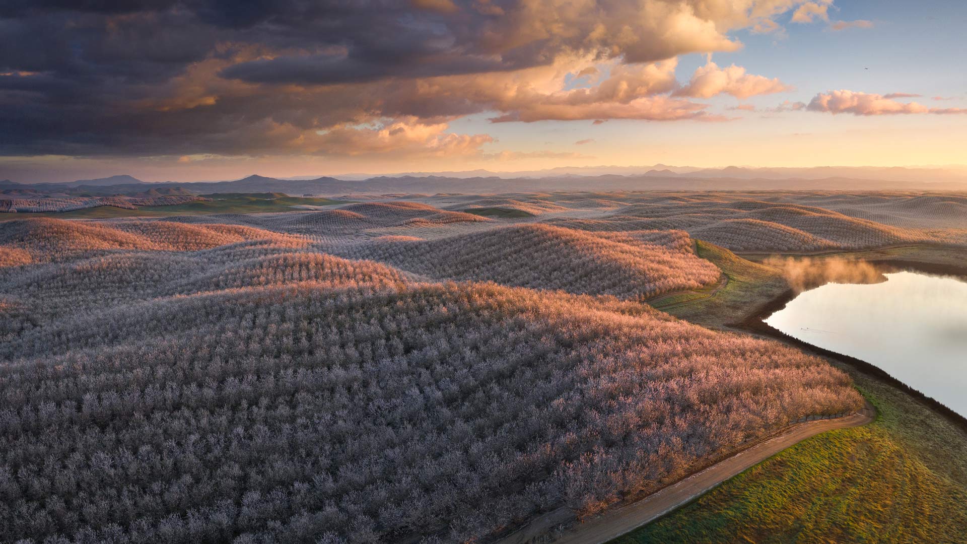 Almond trees in full bloom